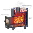 Дровяная печь для бани Везувий Русичъ предназначена для отопления парильного помещения бани или сауны, получения пара и нагрева воды. Максимальная отапливаемый объем помещения 14 м3. Изготовлена из особо прочной котловой стали марки 09Г2С 6-8мм. Дверца для печи из чугуна. Выносной топливный канал помогает растапливать печь, находясь в предбаннике, благодаря этому в парной сохраняется чистота. Так же можно следить за огнем, не проходя в одежде в натопленное помещение. Открытая каменка вмещает до 40 кг камней, позволяя равномерно распределить температуру в парной. К печи необходимо подключить дымоход диаметром 115 мм.