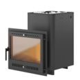 Дровяная печь для бани Везувий Русичъ предназначена для отопления парильного помещения бани или сауны, получения пара и нагрева воды. Максимальная площадь отапливаемого помещения  24м3. Изготовлена из особо прочной котловой стали марки 09Г2С 6-8мм. Дверца для печи сделана из чугуна с большим панорамным стеклом. Топочное пространство отделено от дымохода чугунным зубом отбойником. Отбойник помогает перекрыть прямой ход пламени из топки в трубу, тем самым позволяя дровам полностью сгореть. Эта важная деталь задерживает тепло внутри конструкции. Открытая каменка вмещает до 40кг камней, позволяя равномерно распределить температуру в парной. К печи необходимо подключить дымоход диаметром 115мм.
