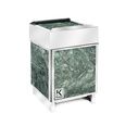 Электрическая каменка в облицовке из змеевика обладает повышенной прочностью и увеличивает полезные свойства банных процедур. Змеевик оказывает положительное способствует повышению настроения и снижает риск вирусных заболеваний. Кроме того, камень нормализует давление и укрепляет иммунитет.