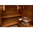 • Вертикальное размещение камней позволяет менять характер тепла в зависимости от подачи воды: сверху для интенсивного горячего парения и сбоку для мягкого и легкого пара.