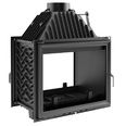 Каминная топка Kratki Amelia/T изготовлена из литого чугуна, толщиной 8 мм, внешние стенки усилены ребрами, которые увеличивают теплонакопление и теплообмен топки и вместе с тем снимают излишки термической нагрузки на стенки топки. Стыки между стеклом и чугуном, а также между дверцей и топочной камерой уплотнены графитовым шнуром. Первичная подача воздуха в топку направляется ручкой зольника. Поворотная шиберная заслонка управляет тягой в дымоходе. Встроенная система обдува стекла препятствует оседанию сажи.