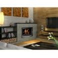 В распашную дверцу вставлено полукруглое стекло из жаропрочной стеклокерамики, через которое можно любоваться объемной игрой живого пламени и следить за сгоранием дров.