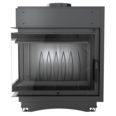 Г-образное стекло из жаропрочной стеклокерамики вставлено в угловую распашную дверцу поверх узкой рамки слева, что увеличивает обзор на игру пламени из-за отсутствия чугунной стойки. Каминная топка предназначена для установки в колонну, во внешний выступ перегородки или на специальный подиум.