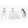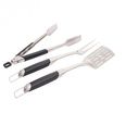 Набор Char-Broil из трёх предметов из нержавеющей стали с обрезиненными рукоятками: щипцы, лопатка и вилы. На ребре лопатки расположена пилка для удобного разделения продуктов.