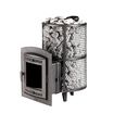 Печь Атмосфера L с увеличенной каменкой и повышенной производительностью. Кожух печи изготовлен в виде сетки из стали и полностью заполняется природными камнями, обеспечивая высокую динамику нагрева парильного помещения.
