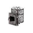 Печь Атмосфера М с увеличенной каменкой и повышенной производительностью. Кожух печи изготовлен в виде сетки из стали и полностью заполняется природными камнями, обеспечивая высокую динамику нагрева парильного помещения.