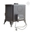 Печь изготовлена из серого чугуна с толщиной стенок 8 мм. Чугун обладает высокой теплопроводностью, буржуйка начинает отдавать тепло в помещение сразу после затопки. Мощности печи 7 кВт достаточно для отопления загородного дома площадью до 70 м2. Печь имеет герметичную топку и работает в режиме длительного горения с КПД 75%. Встроенные тепловентилятор (турбина) позволяет быстро нагнетать теплый воздух в помещение, увеличивая тепловую эффективность печи.