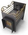Дровяная печь для бани серии Сабантуй имеет эксклюзивный дизайн, с кованными элементами и национальным башкирским рисунком. Печь способна отапливать предбанник и рассчитана под обкладку кирпичом. Максимальная площадь отапливаемого помещения 26 м3. Труба изготовлена из стали марки 09Г2С. Печь топится сухими дровами. Дверца из чугуна. К печи подключается дымоход диаметром 115 мм.