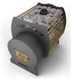 Дровяная печь для бани серии Сабантуй Каменка предназначена для отопления парильного помещения бани, получения пара и нагрева воды. Топка и каменка данной модели выполнены из жаростойкой стали. Топку окружает кованная сетка, которая образует каменку. В ней может поместиться до 200 кг камней. Максимальная площадь отапливаемого помещения 40 м3. Труба изготовлена из стали марки 09Г2С. Печь топится сухими дровами. Дверца из чугуна. К печи подключается дымоход диаметром 115 мм.